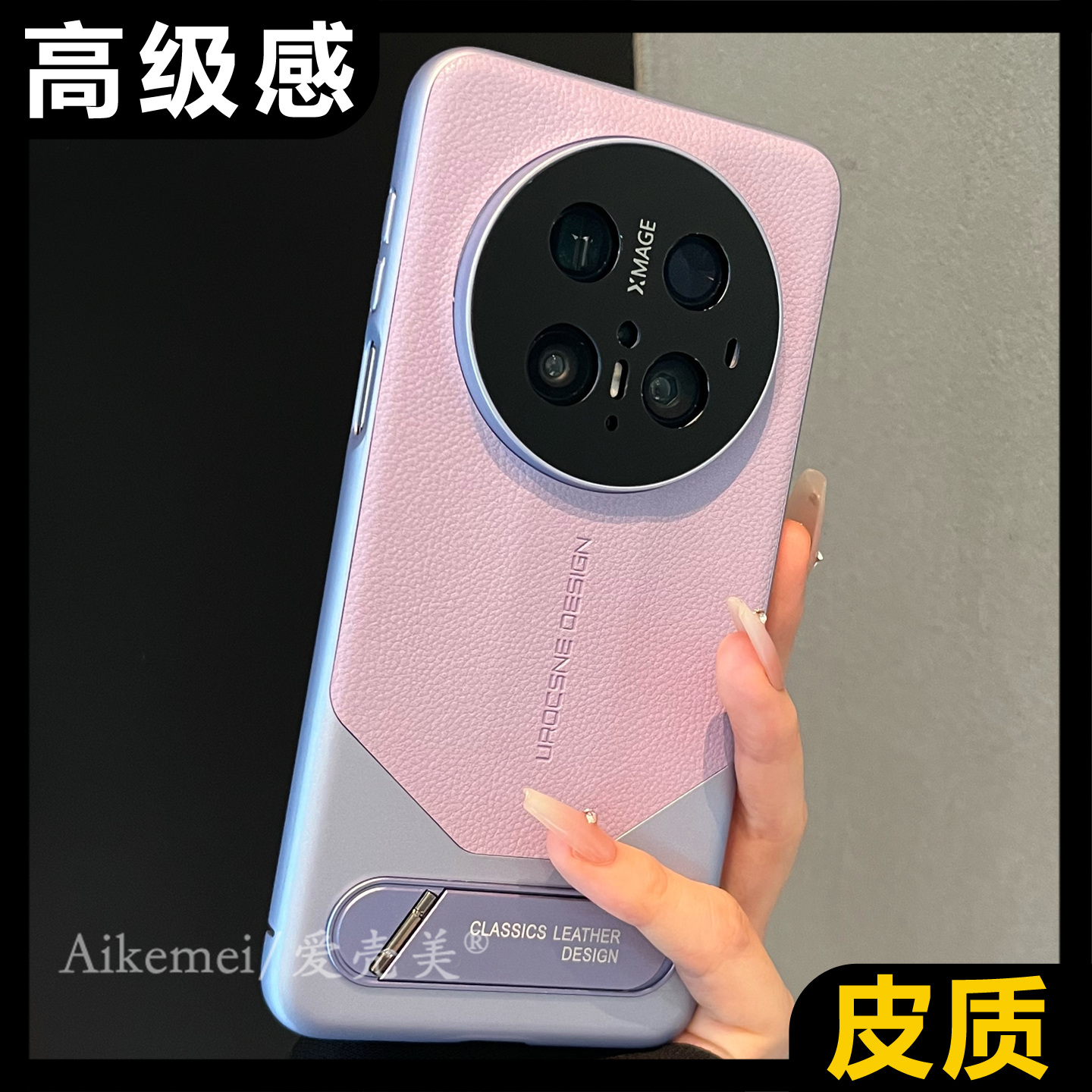 适用华为mate70pro+手机壳超薄新款撞色皮纹Mate60pro秒变非凡大师创意隐形支架pura80/70pro+全包防摔男女款