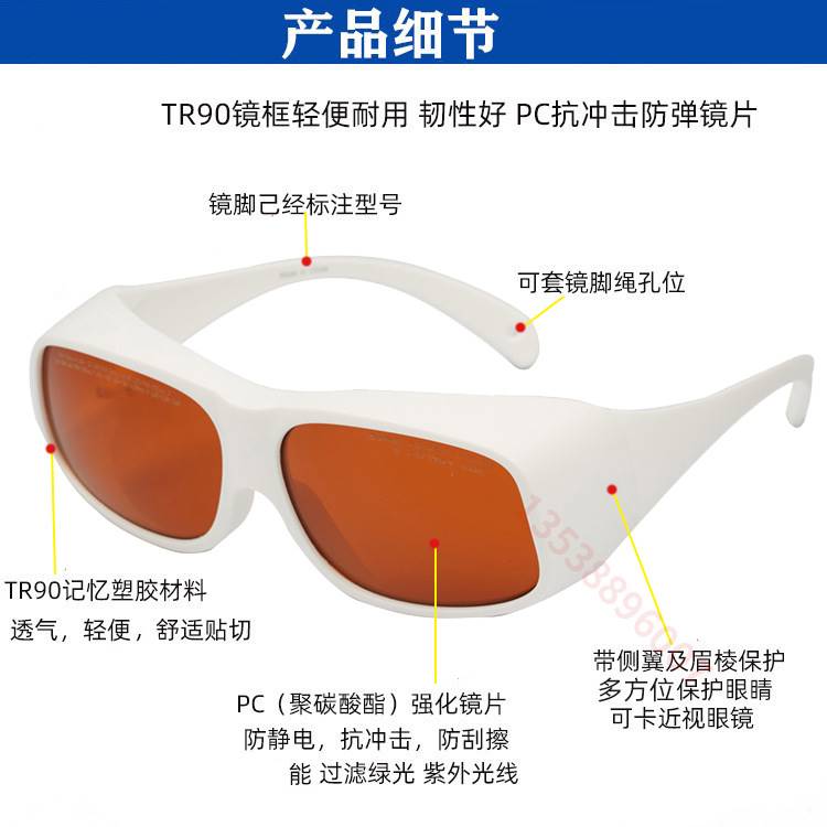 激光防护眼镜蓝光紫外光绿光皮秒opt祛疤美容仪嫩肤红外护目镜532nm1064nm650-808nm激光切割打标OD4/OD5+