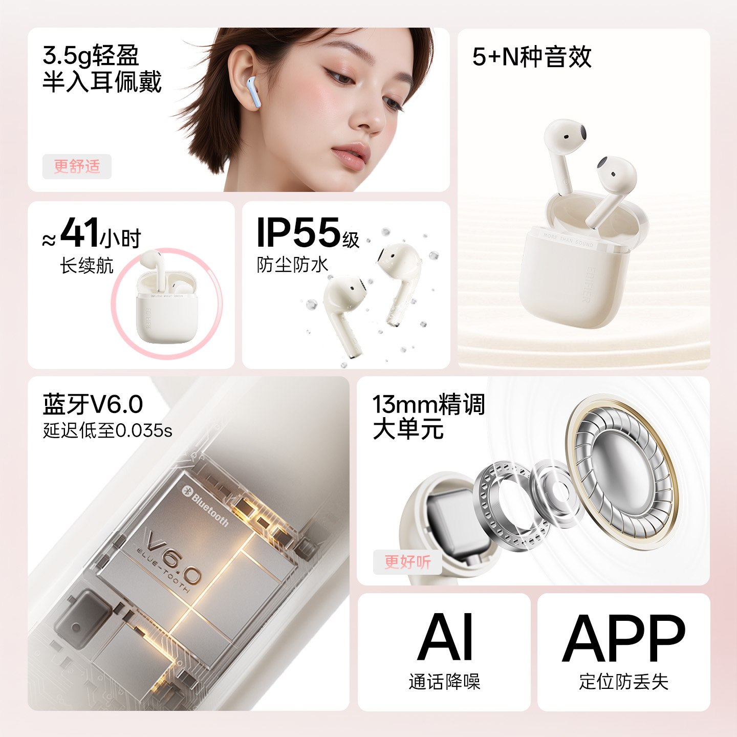 音贝奇Real1Pro无线蓝牙耳机主动降噪入耳式2025新款高音质长续航