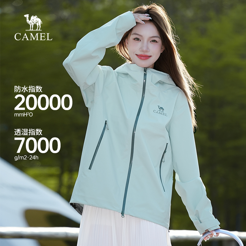 骆驼女装单层冲锋衣2025秋冬新款户外防风防水连帽立领男女款外套