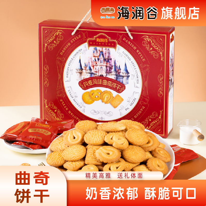 海润谷丹麦风味曲奇饼干1000g伴手礼盒零美食品情人节送礼物包邮