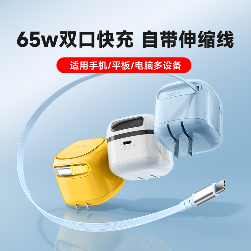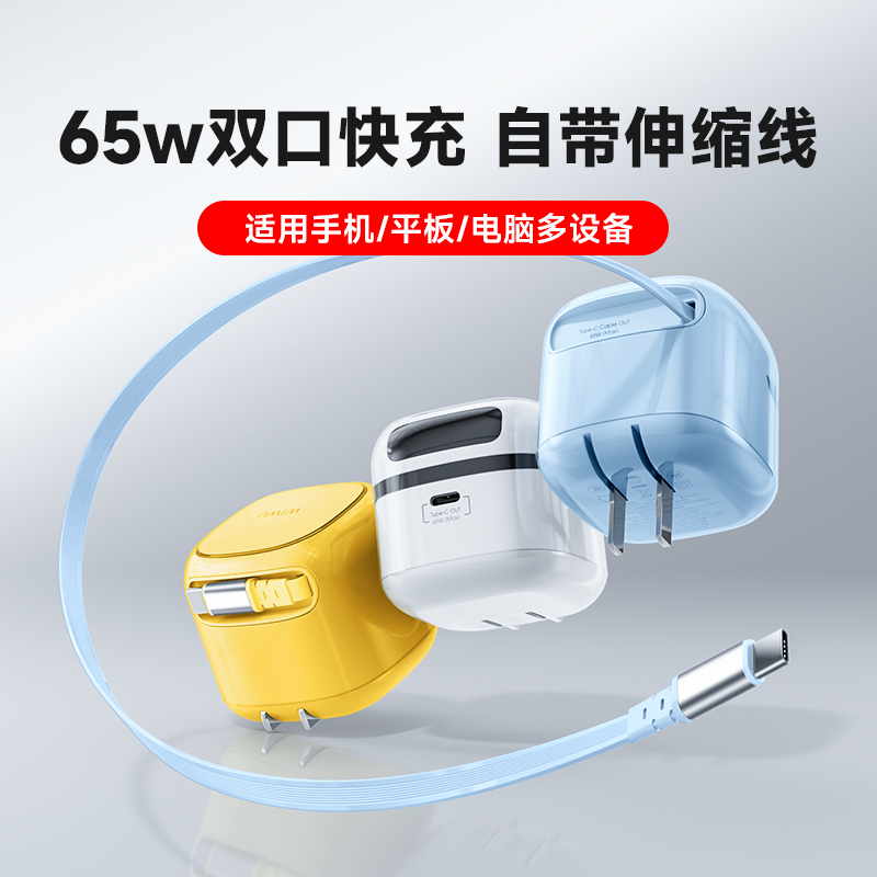 65w氮化镓充电头快充充电器自带伸缩线typec插头PD充电线适用于华为苹果16promax笔记本电脑iphone15为悟wiwu