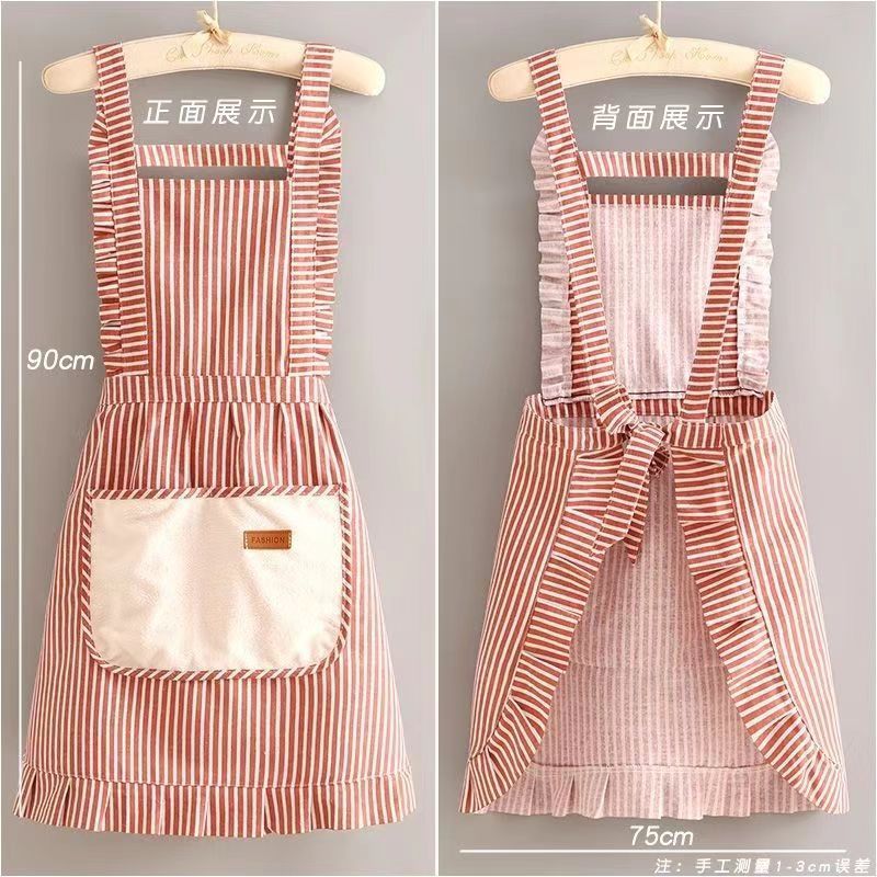 棉麻围裙家用厨房餐饮工作服防水防油耐脏可擦手毛巾做饭围腰罩衣