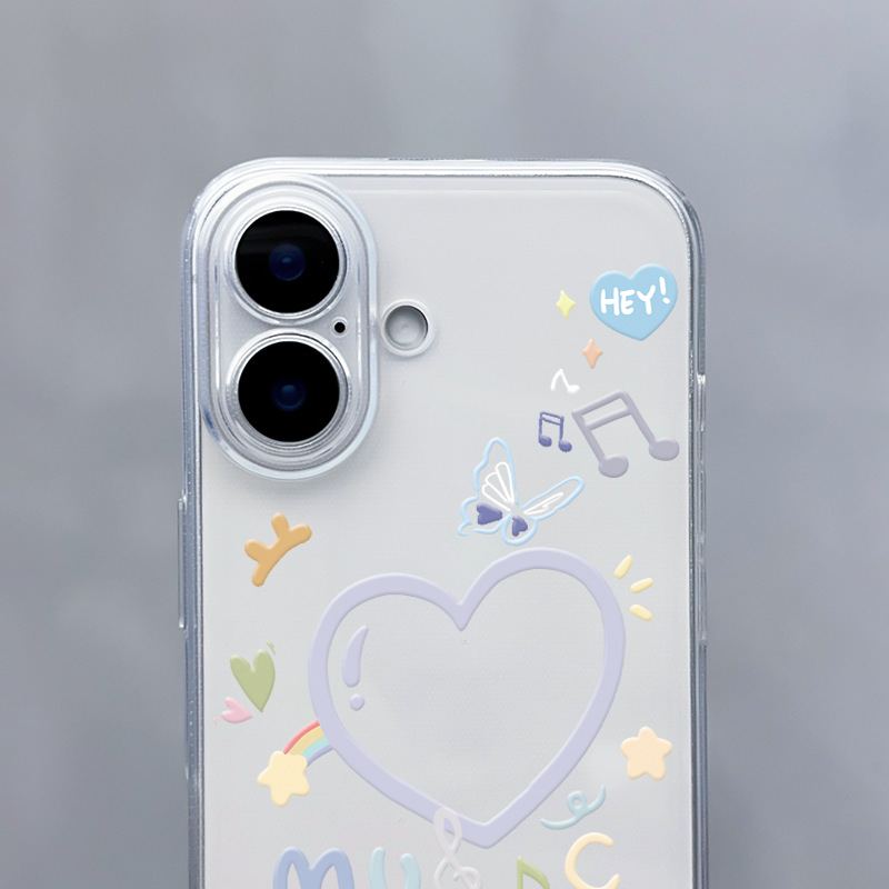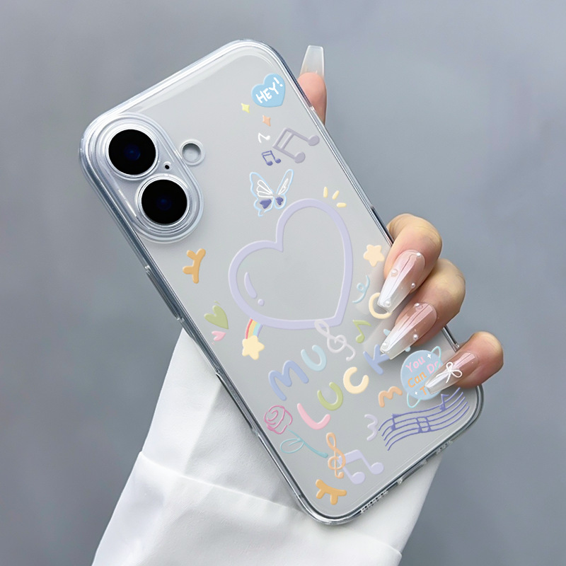 音乐爱心适用16pro手机壳iPhone15promax透明壳14防摔13全包12软壳11保护壳