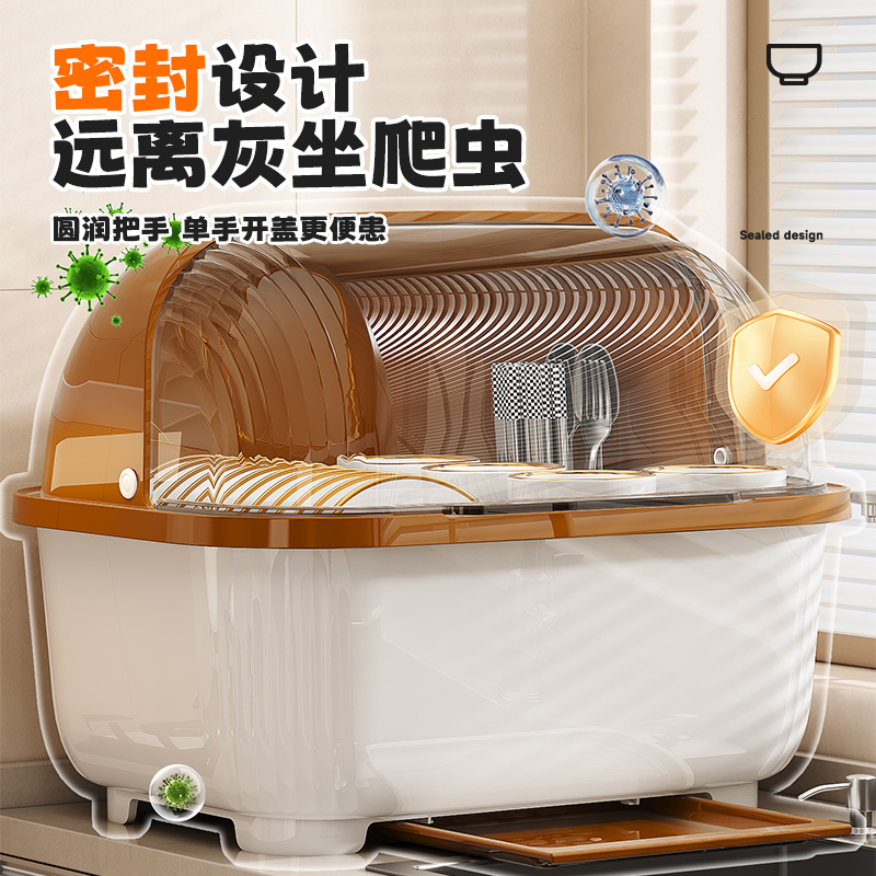 碗筷收纳盒放碗碟置物架带盖双层沥水家用厨房装碗盘收纳架箱碗柜
