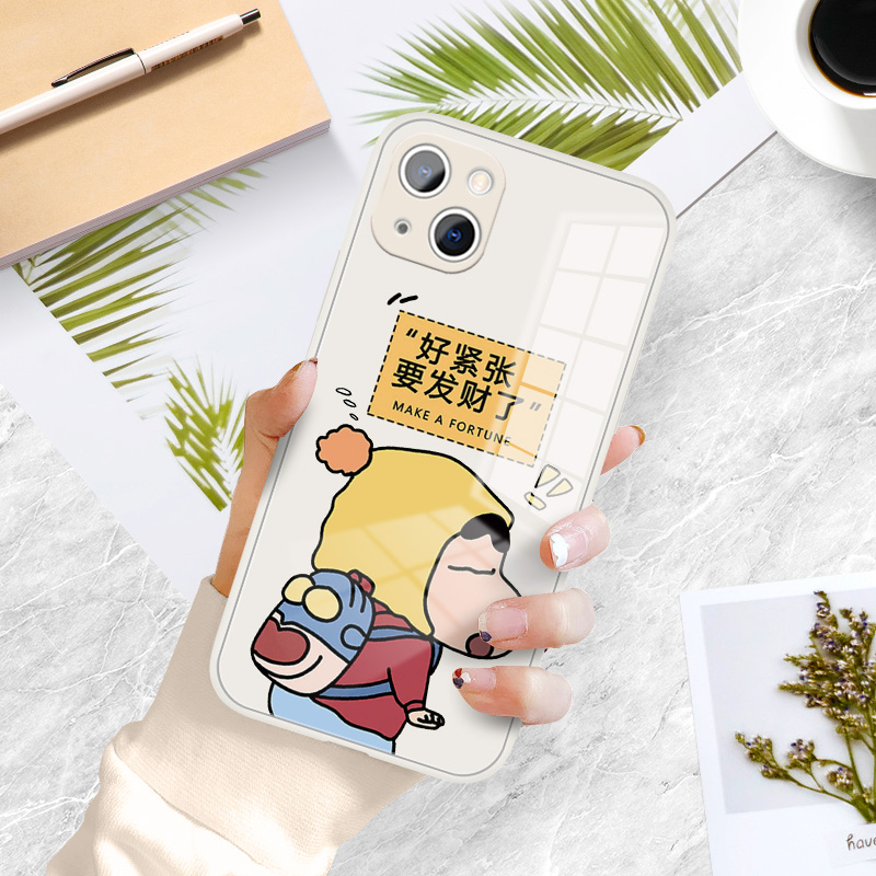 好紧张要发财了苹果13手机壳新款iPhone12卡通14promax蜡笔小新11mini个性7/8plus玻璃ip15适用xsmax/xr套16e