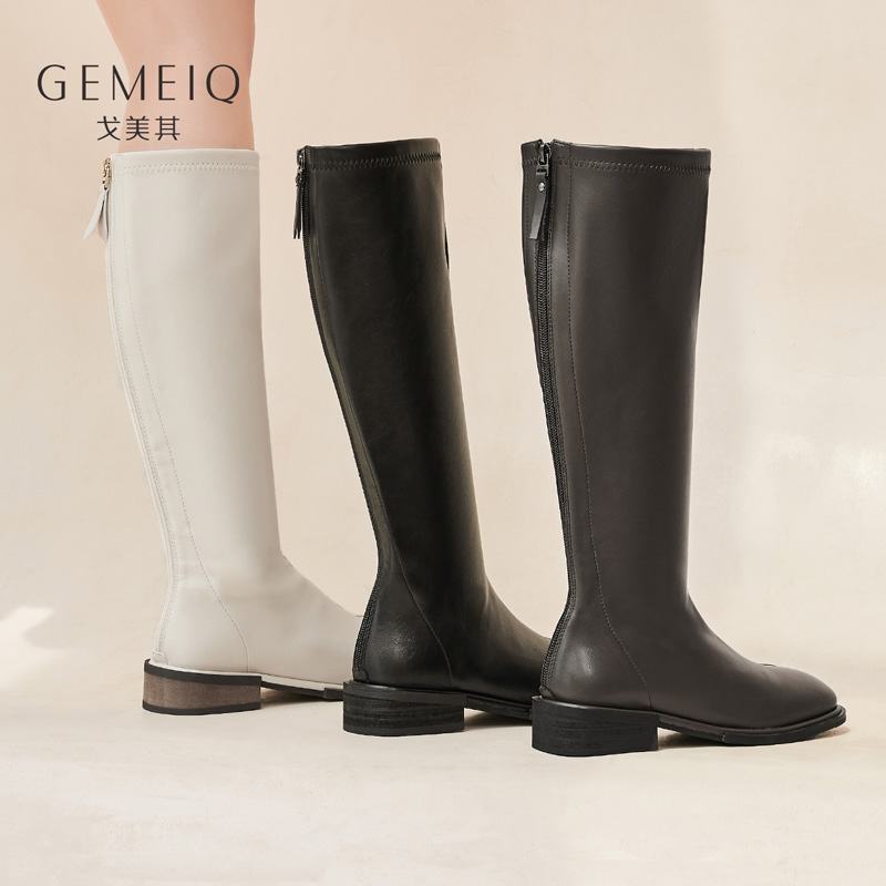 戈美其靴子长筒靴女2024新款秋冬黑色靴子骑士靴长靴配大衣的靴子