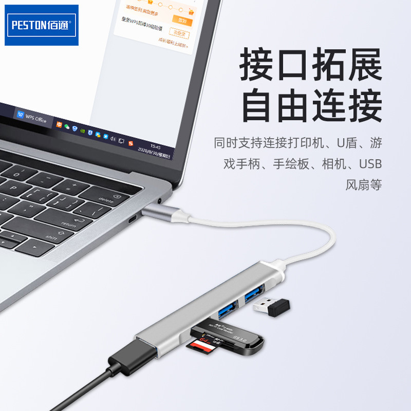 佰通Type-C一拖四USB3.0拓展笔记本车载转接头多接口电脑MACbook手机四合一转换器OTG平板iPad连接usb分线器