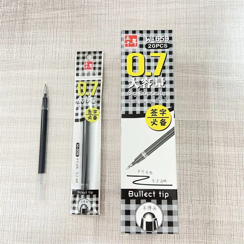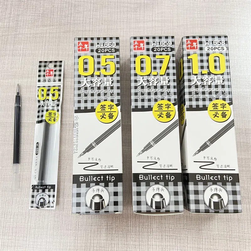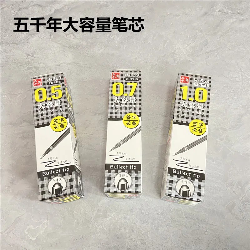 五千年大容量笔芯0.5/0.7/1.0mm黑色子弹头中性笔替芯书写流畅659