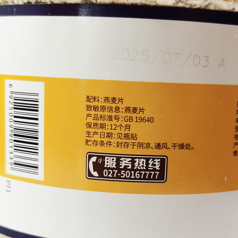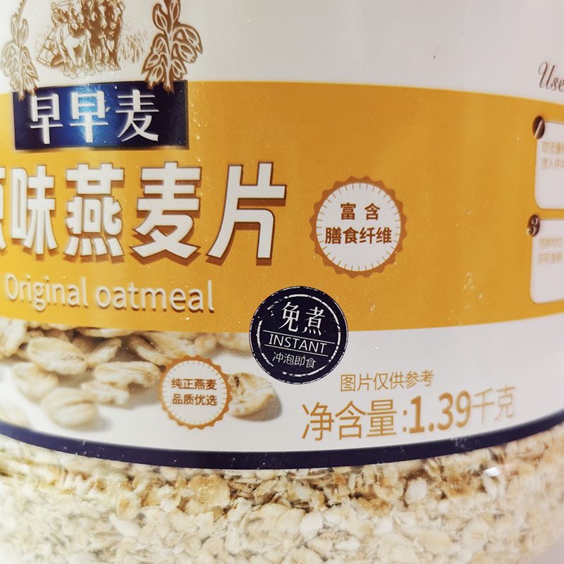 早早麦原味免煮纯燕麦片1390g 富含膳食纤维中老年全家营养早餐