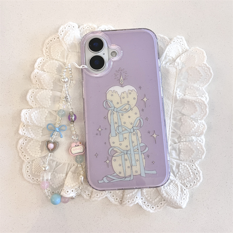 淳于亦ins风少女心紫色温柔蝴蝶结蜡烛蛋糕适用苹果16promax手机壳15pro防摔保护14/13软壳12/11创意个性链条