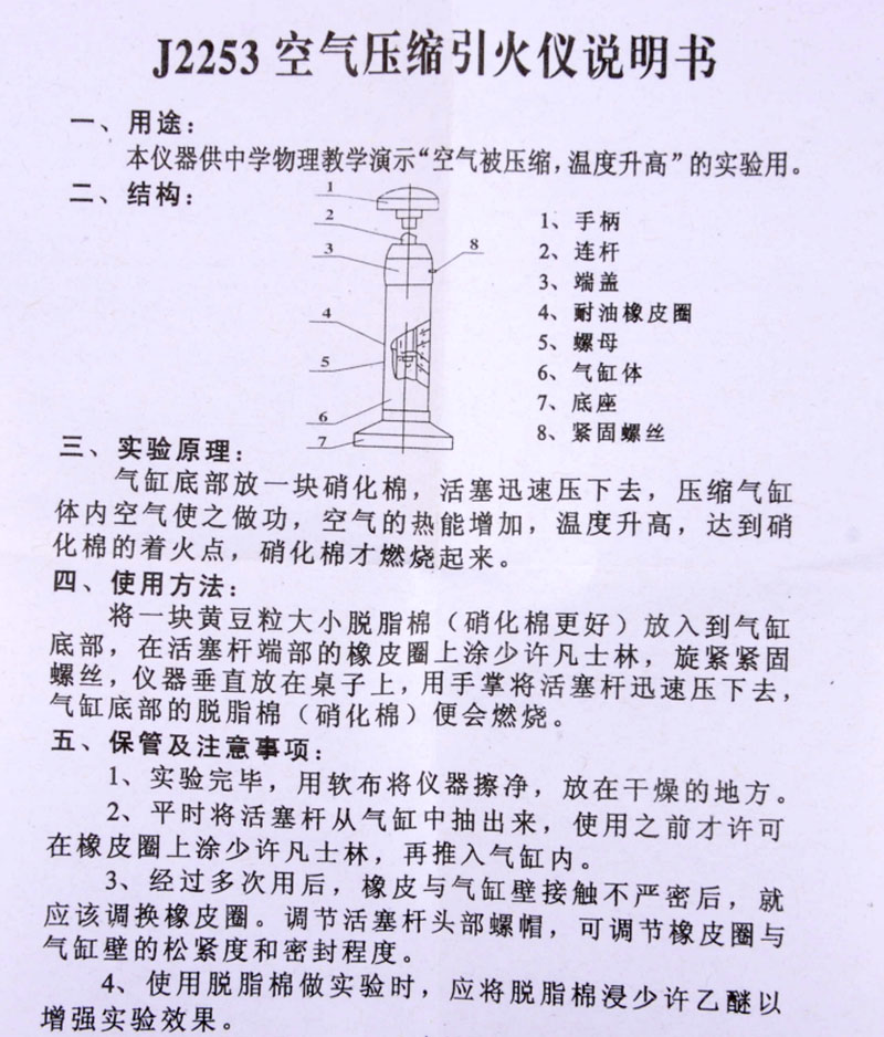 优质空气压缩引火仪 加厚款 机械能转内能热能能的转化热学演示