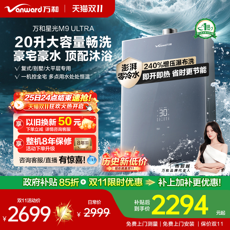 [政府补贴]万和新品零冷水节能恒温天然气燃气热水器星光M9Ultra