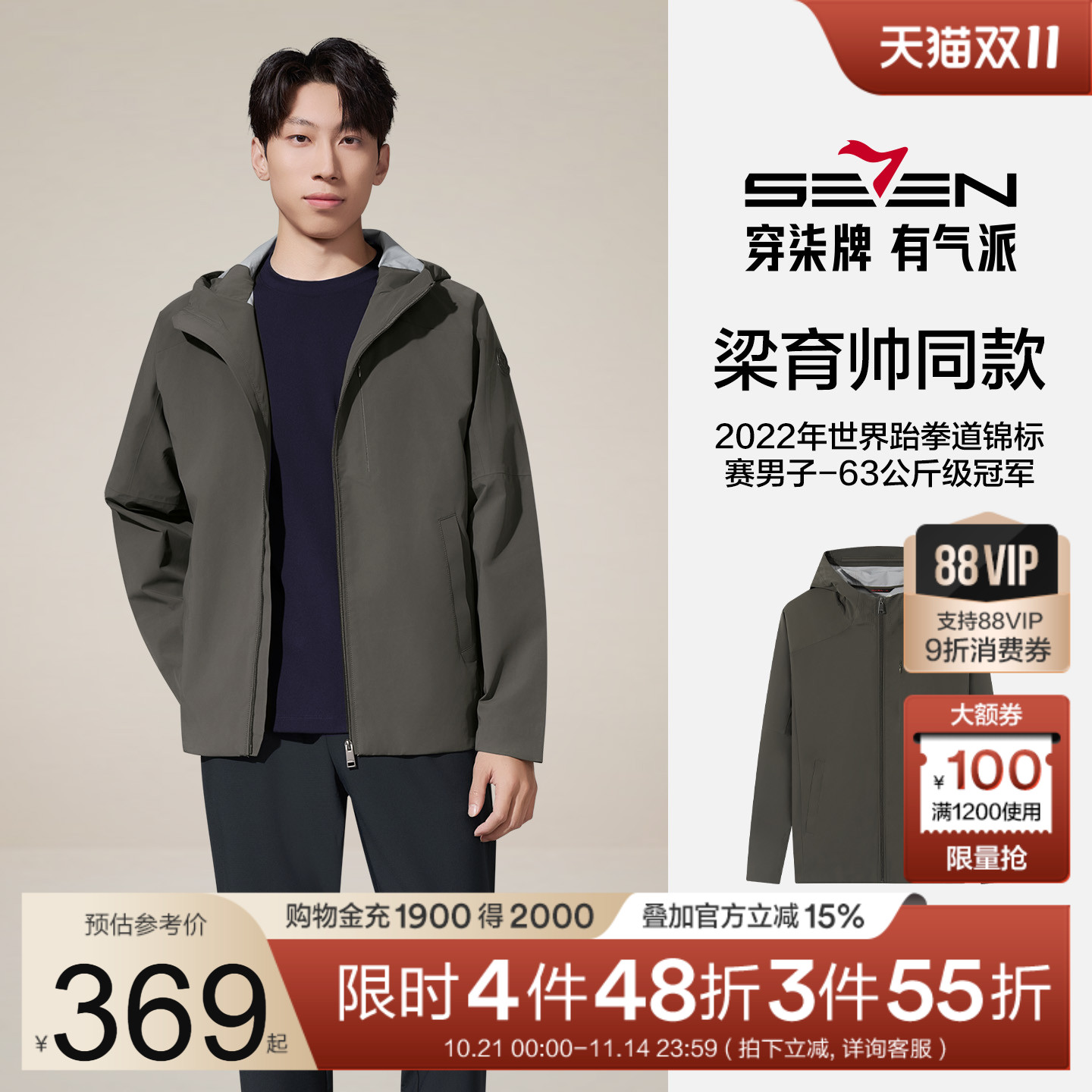 【梁育帅同款】柒牌连帽夹克男秋冬季时尚潮流户外登山服休闲外套