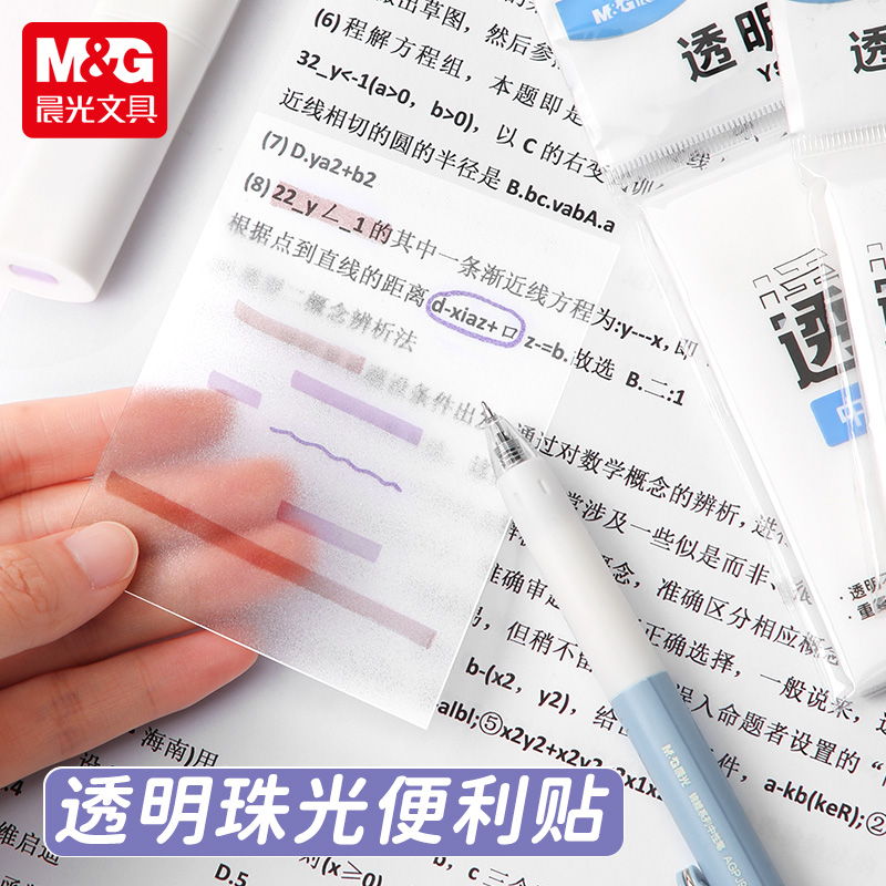 晨光优事贴透明无遮挡便利贴可写速干学生用重点标记PET防水有粘性便签贴纸n次贴手帐记号索引贴可撕式备忘贴