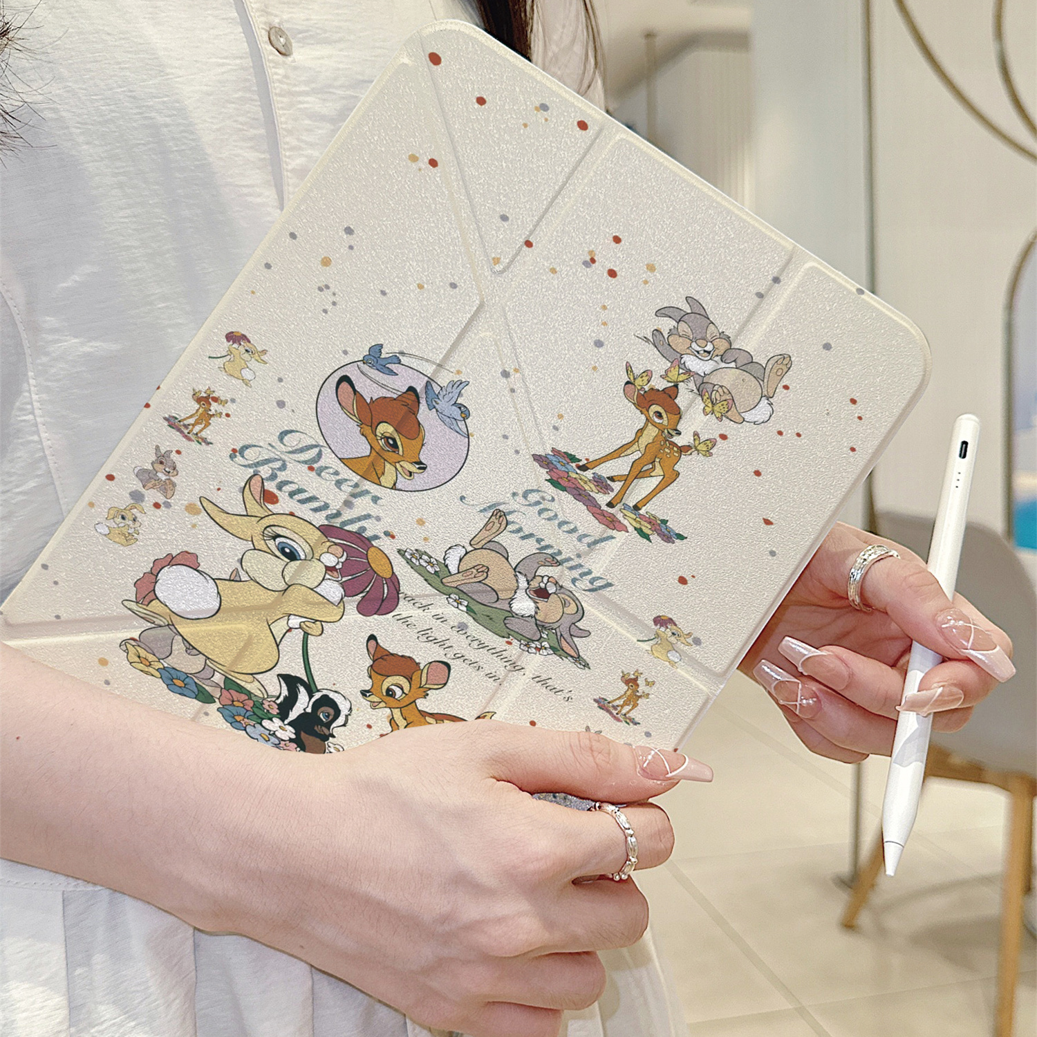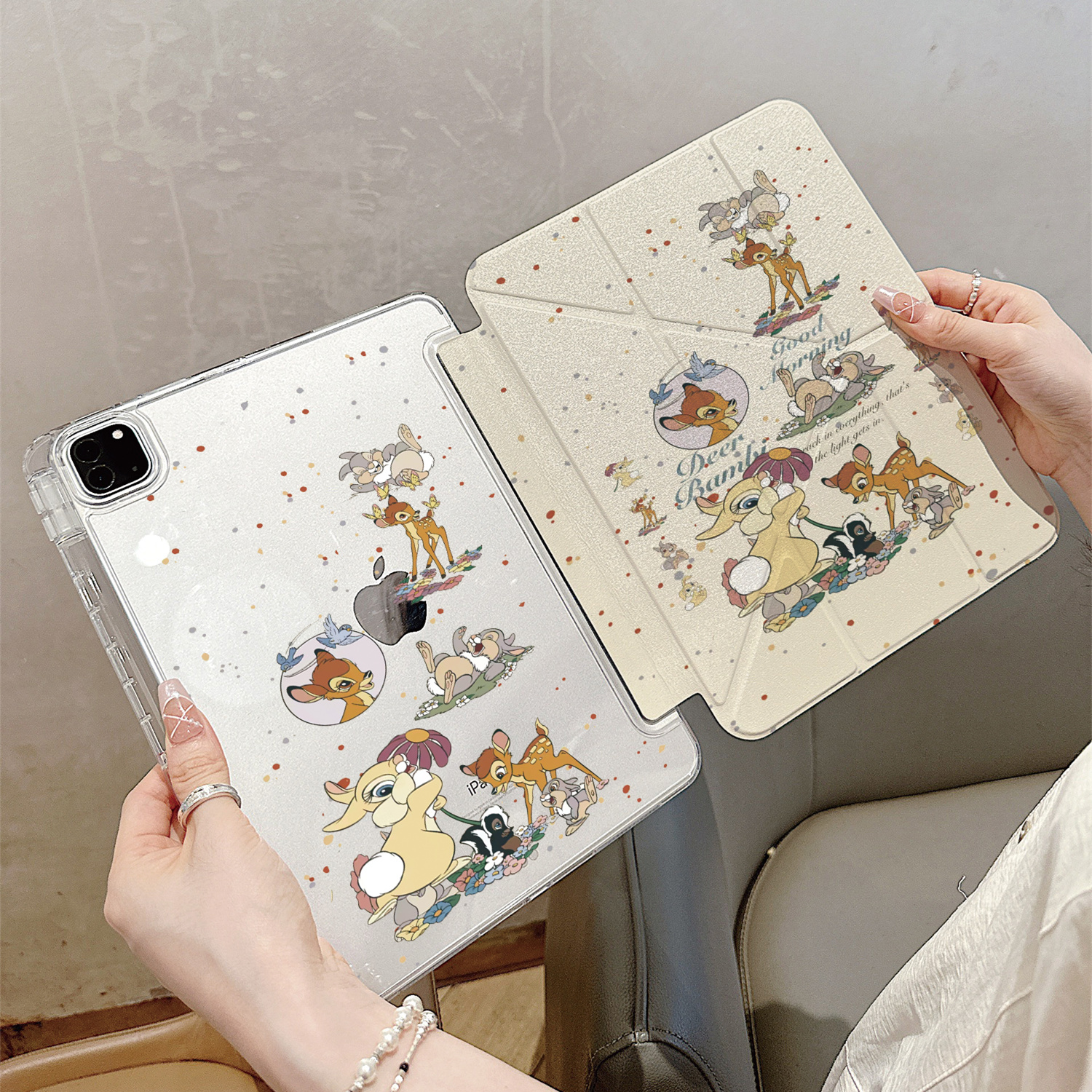 可爱小鹿斑比兔子苹果平板保护套适用iPadPro2024新款Y形折叠air6带笔槽10.9/11寸mini6女12.9寸保护壳iPad6