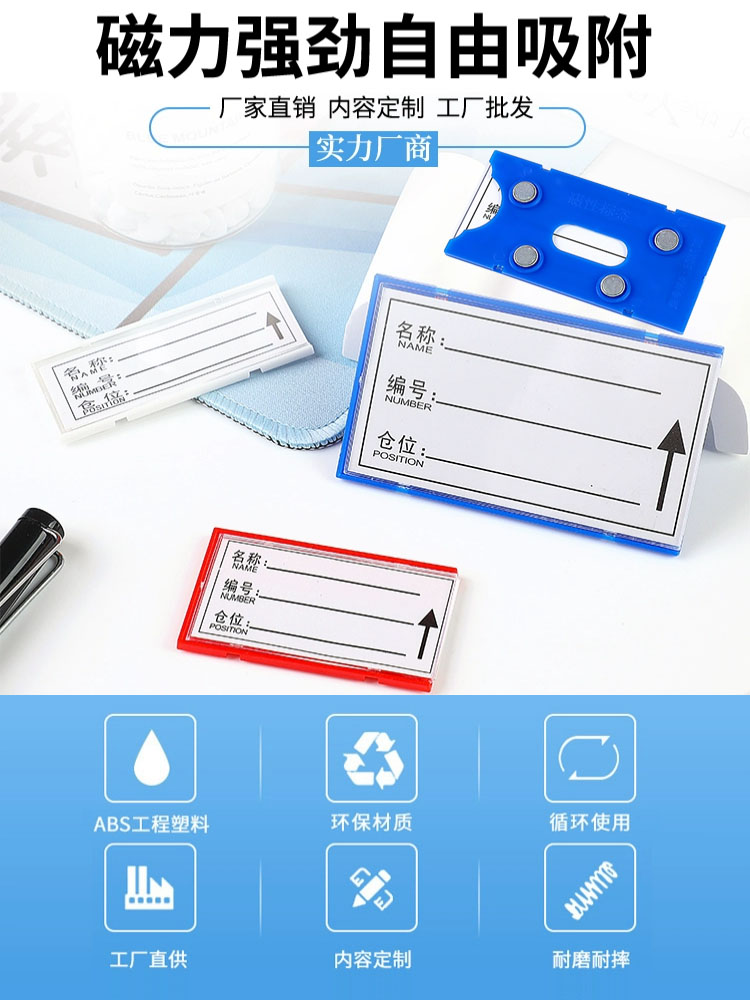 磁吸标识牌仓库仓储货架货位分类材料卡强磁性标签牌物料卡套贴片