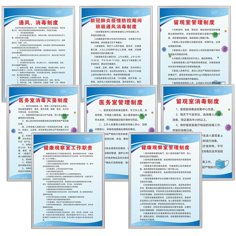 新冠疫情防控健康观察室工作职责标语挂图标识规章KT板定制班级通风消毒留观室医务室消毒灭菌管理制度标识牌