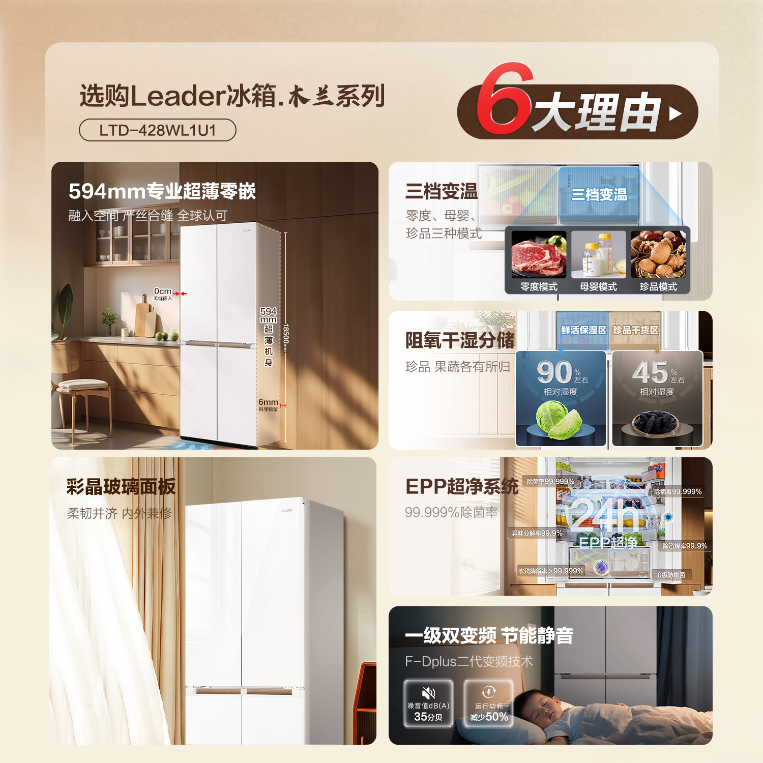 政府补贴超薄零嵌海尔统帅428十字对开门四门木兰大容量无霜冰箱