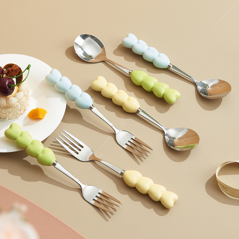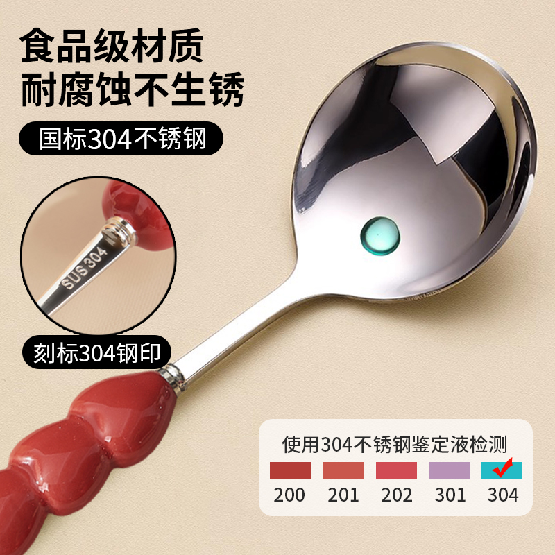 创意家用餐勺食品级304不锈钢餐叉调羹陶瓷手柄防烫西餐勺子喝汤