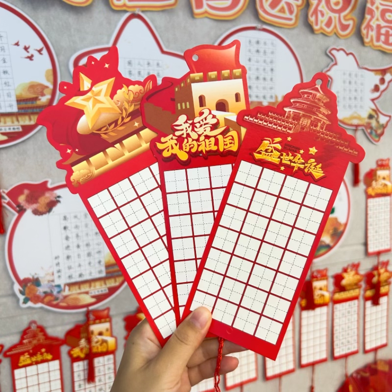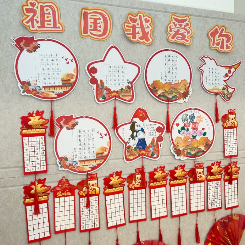 祖国我爱你书法作品展示墙国庆节爱国主题小学生儿童手写硬笔田字格五言七言古诗抄写纸diy异形空白彩色卡纸
