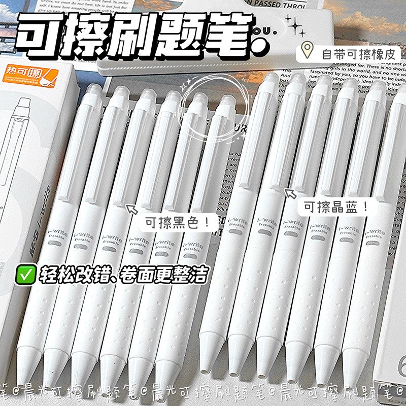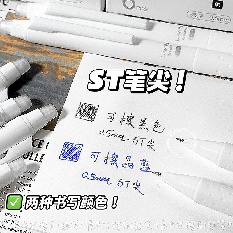 晨光按动可擦笔可擦中性笔小学生专用三年级黑色晶蓝ST笔头热敏可擦笔男孩磨易摩易摩擦魔力擦笔笔芯替换芯