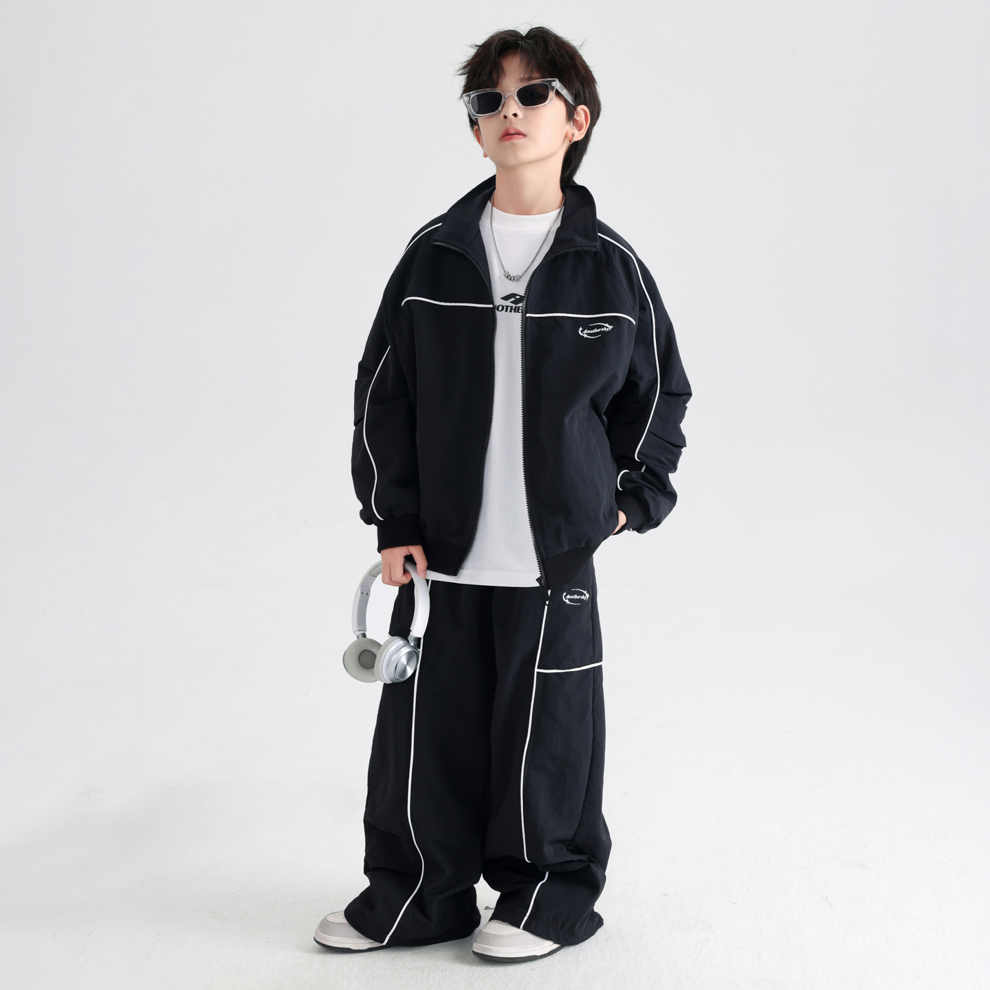 男童早秋季韩范撞色机车风运动套装2025新款中学生儿童户外两件套
