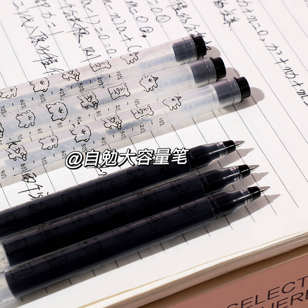 衔书自勉大容量中性笔线条小狗黑色0.5子弹头学生用刷题笔巨能写
