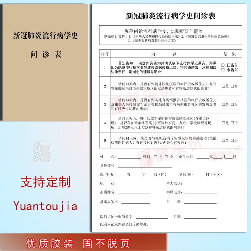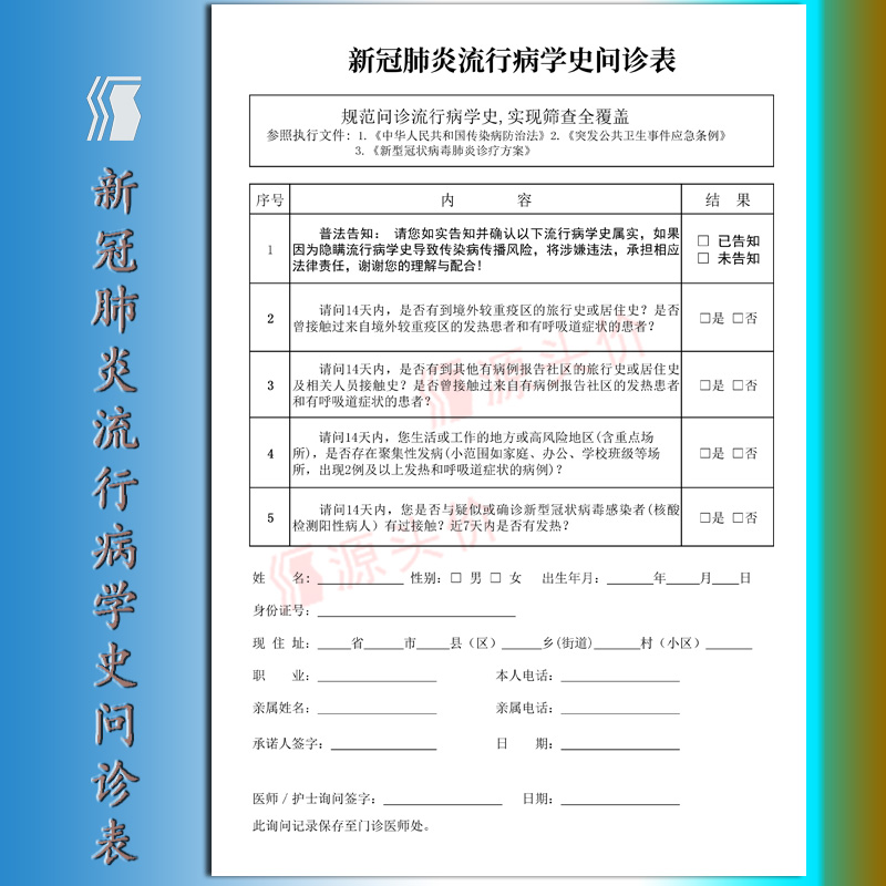 新冠问诊表流行病学史肺炎发热患者卫生医院诊所预检本风险防疫区