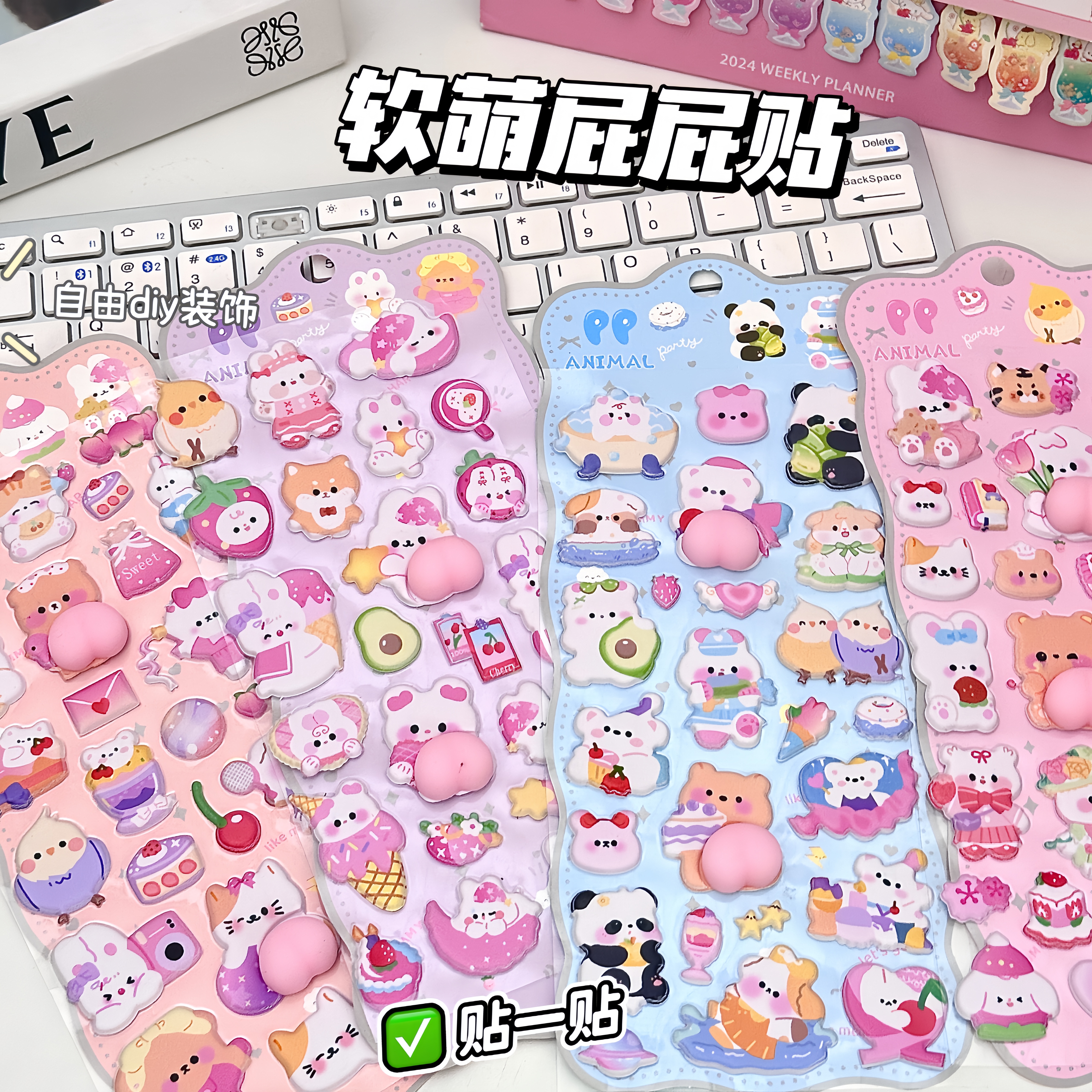 ins风可爱卡通3D立体浮雕屁屁贴纸手账素材装饰贴画diy手机壳贴纸