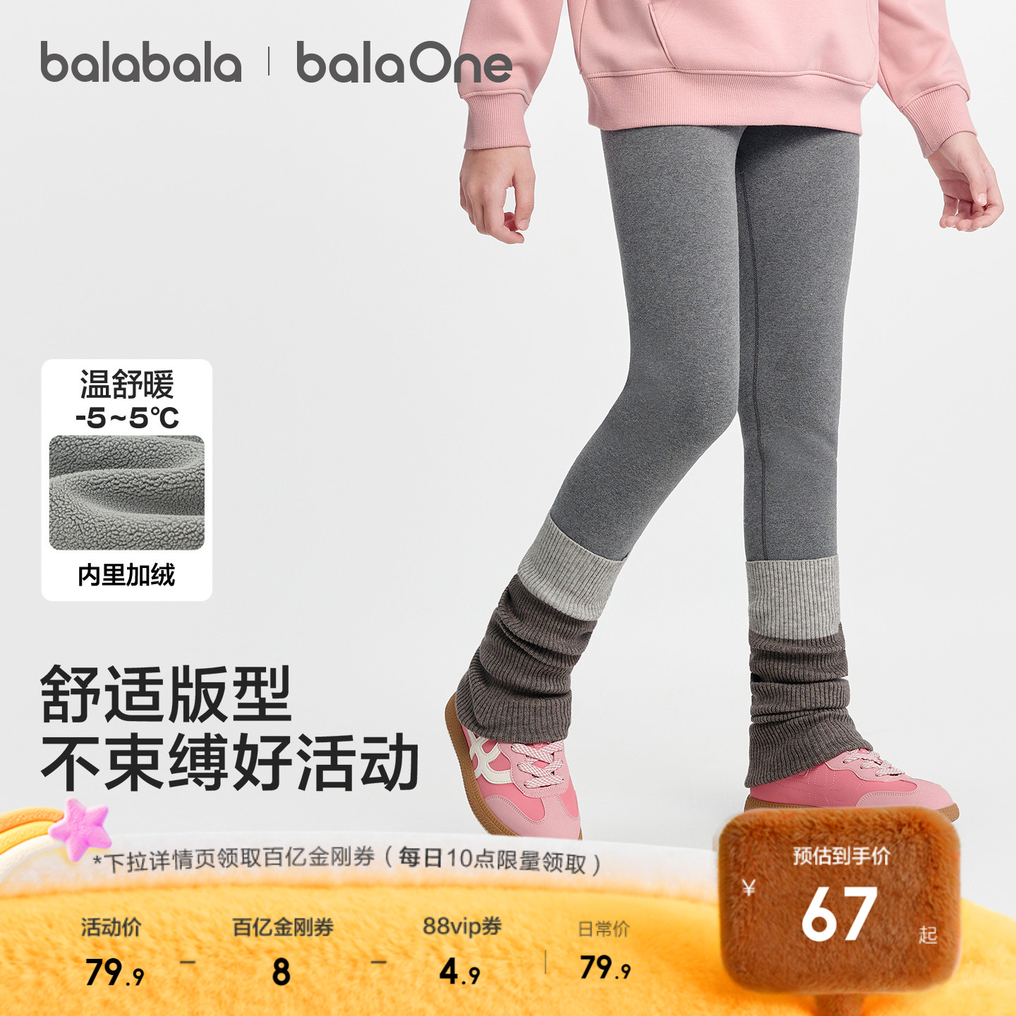 巴拉巴拉童装女童加绒打底裤2025冬装新款儿童保暖长裤子洋气刺绣