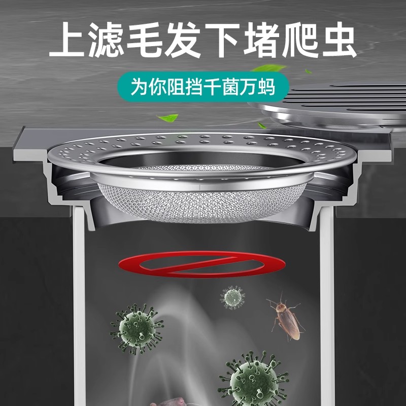 通用型地漏毛发过滤网卫生间下水道封闭口盖防虫防臭反味神器方形