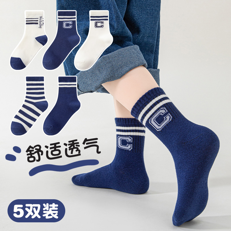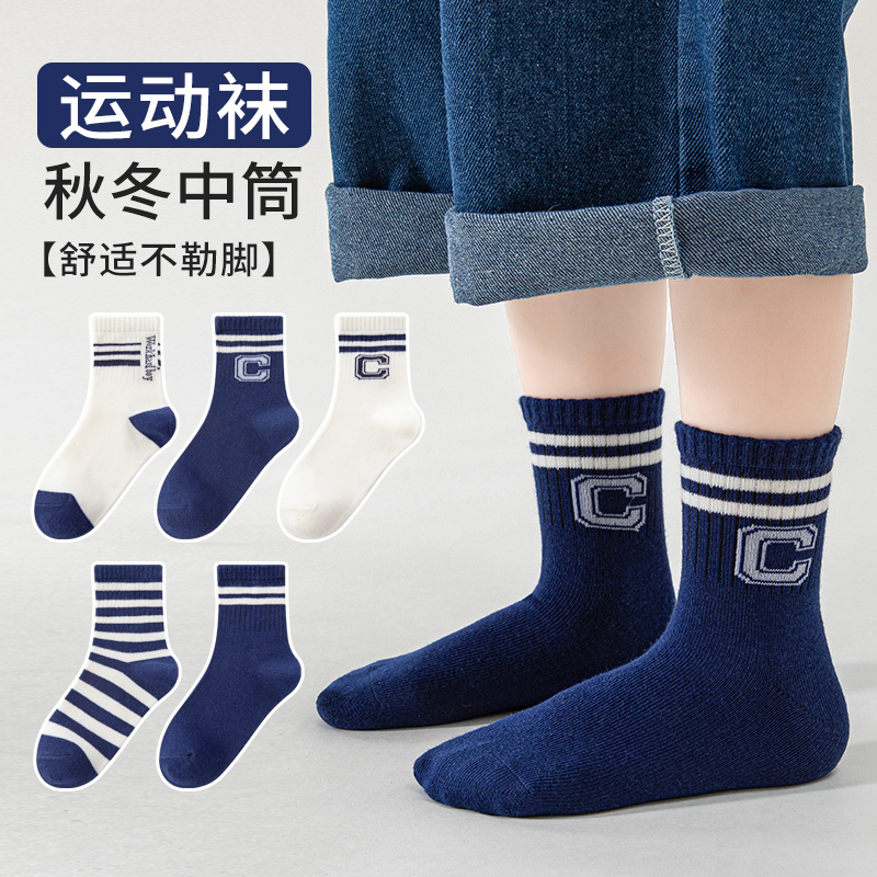 男童袜子春秋款纯棉儿童防臭吸汗青少年学生儿童无骨大童中筒运动