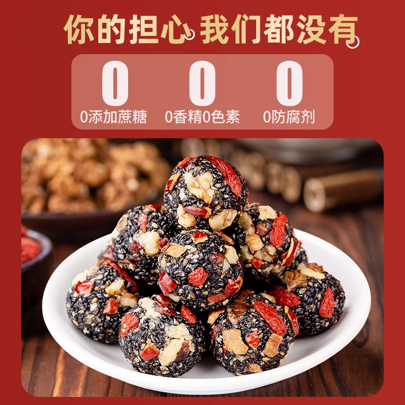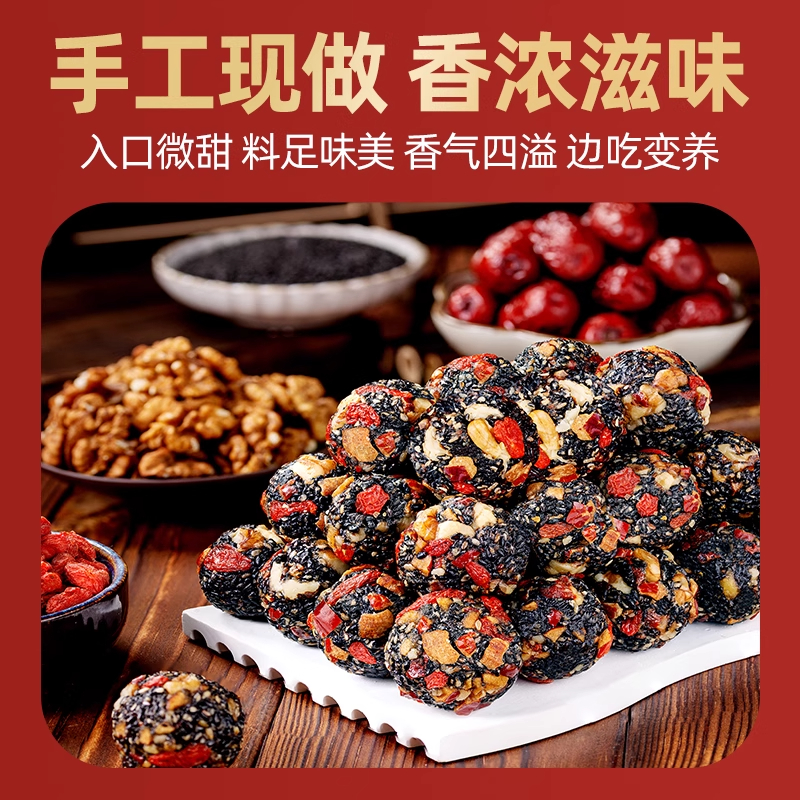 黑芝麻丸红枣核桃仁软糕芝麻球五黑丸营养孕妇老人孩子零食健康