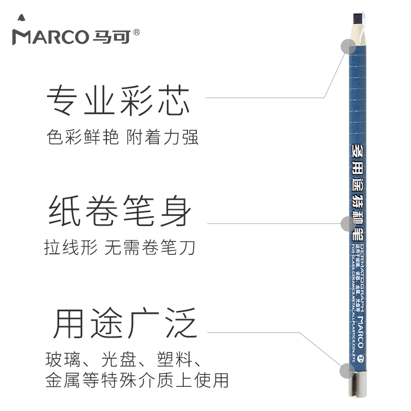 马可4700-12CB多用途铅笔特种铅笔白色黑色红色蓝色纸卷笔可写玻璃瓷砖金属塑料等材质多用途