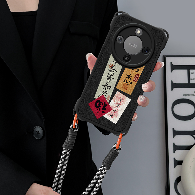 佳朗适用于华为荣耀X70手机壳X60Pro书法文字体X50GT斜跨X40i长挂绳Magic7防摔X30新300保护套400女款90腕带