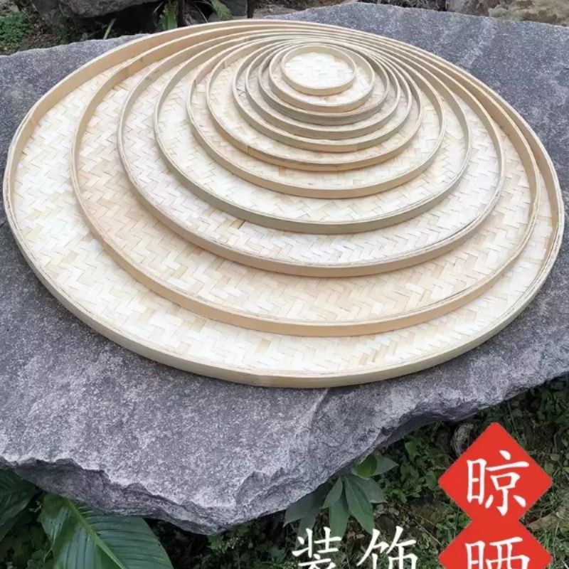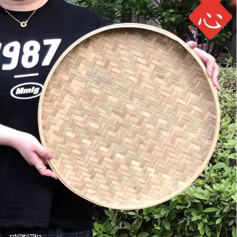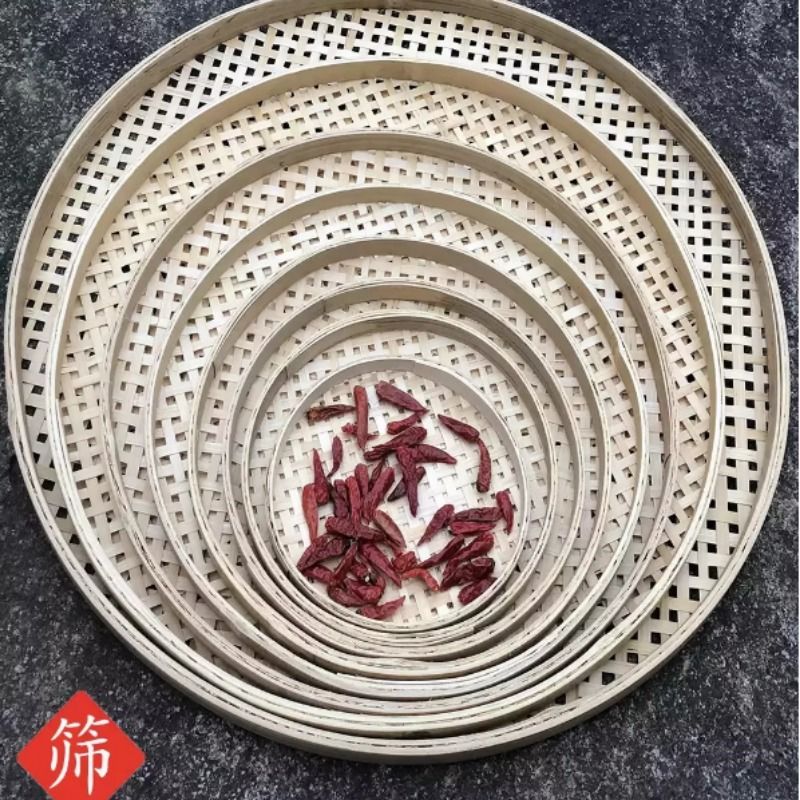 竹编簸箕有孔米筛子家用竹匾竹筐圆托盘晾晒绘画装饰竹制品竹篦子