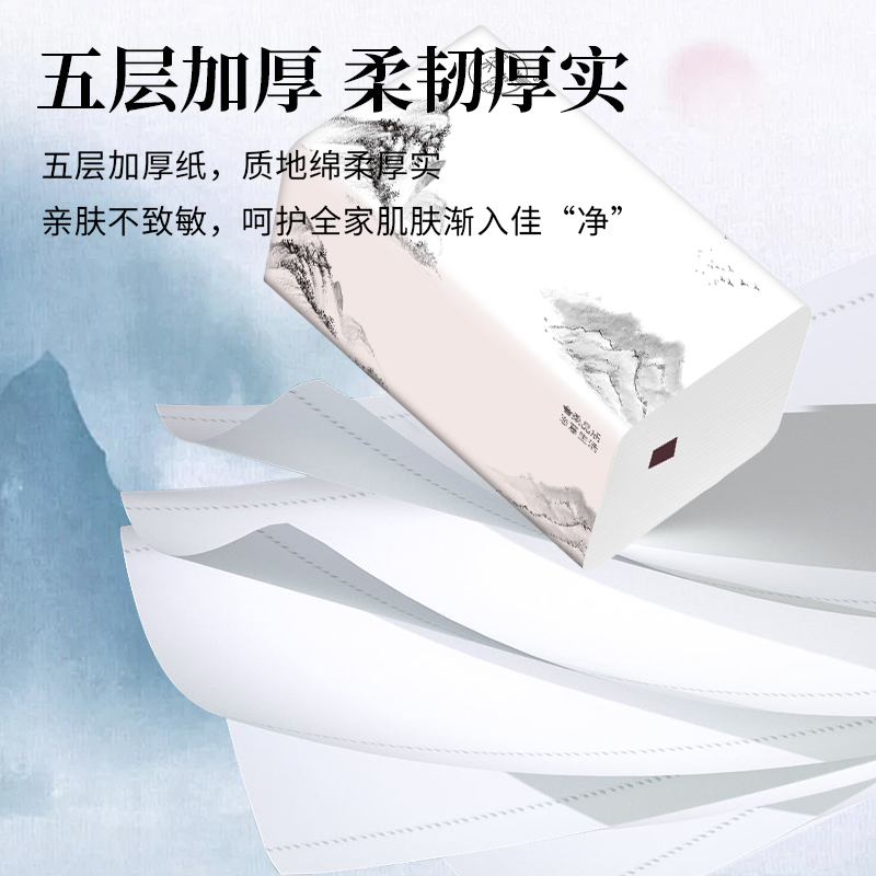 柔恣600张大尺寸5层加厚面巾纸柔软不掉屑干湿两用餐巾纸抽纸
