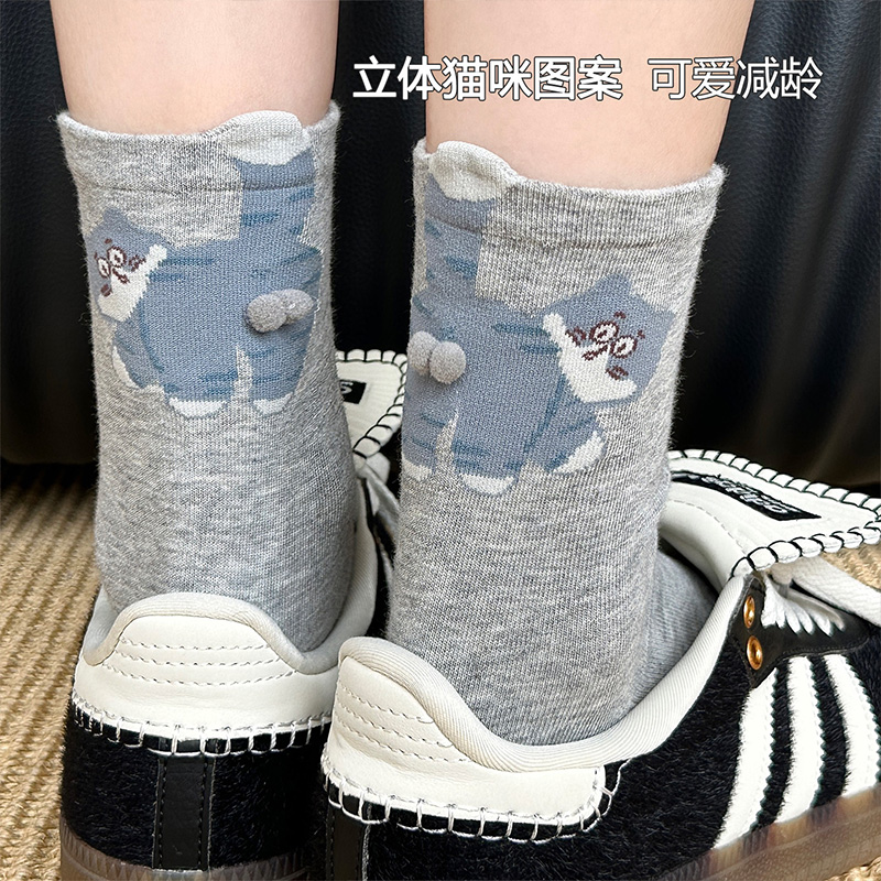 可爱猫咪蛋蛋袜子女纯棉中筒袜夏季薄款2025新款立体小球卡通长袜