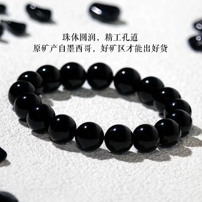10A级天然黑曜石手链男女本命年招财转运单圈手串复古风个性设计