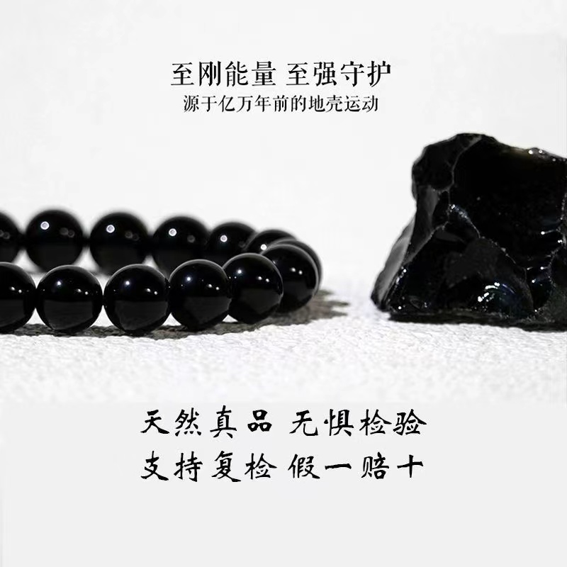 SMVP纯天然收藏级矿心黑曜石送父母男女情侣手链纯黑色高级