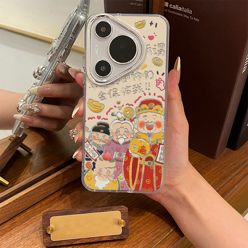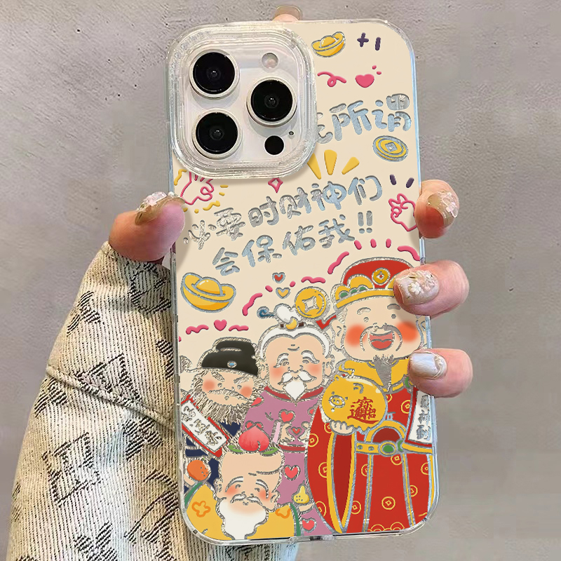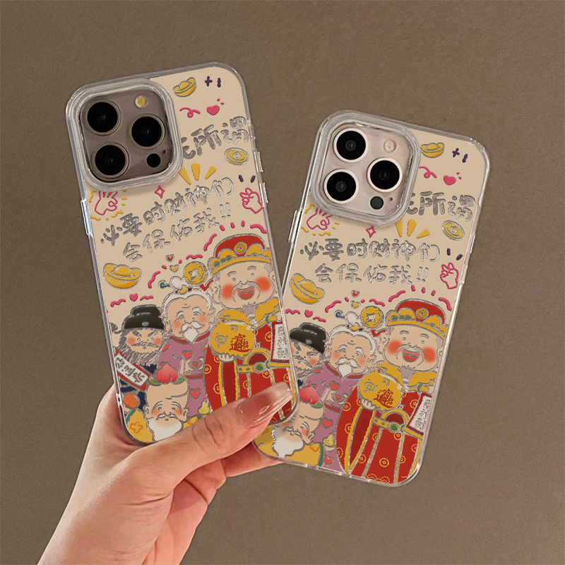 ins必要时财神会保佑锡纸纹适用苹果15promax手机壳iPhone16新款13高级感12华为P70荣耀90vivo小米14红米oppo