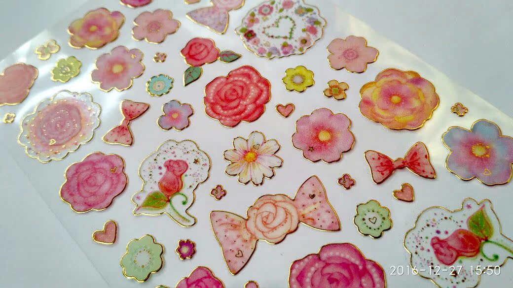金铂手账贴 平面金边贴纸 相册手机DIY装饰贴纸 随意贴 花朵贴纸