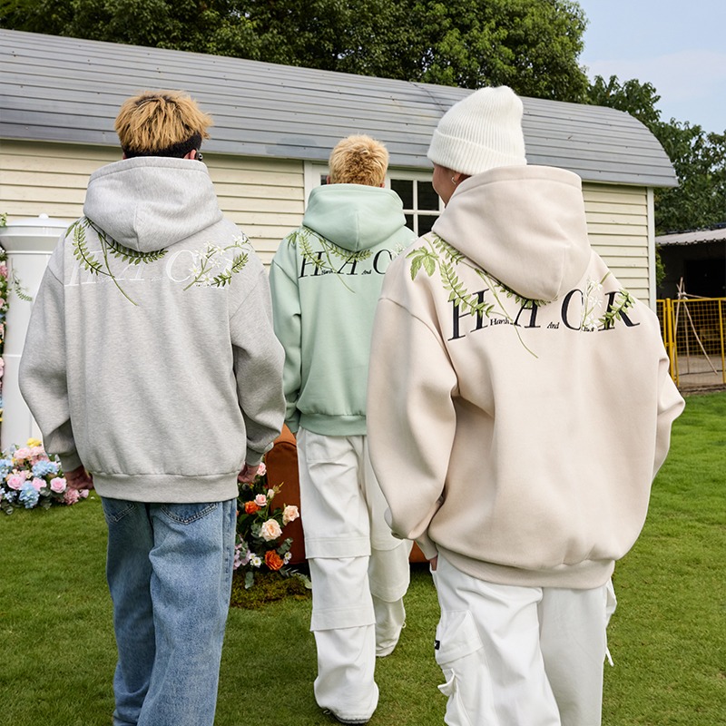 harshandcruel 新中式花卉花环刺绣文字HACR廓形连帽卫衣国潮流