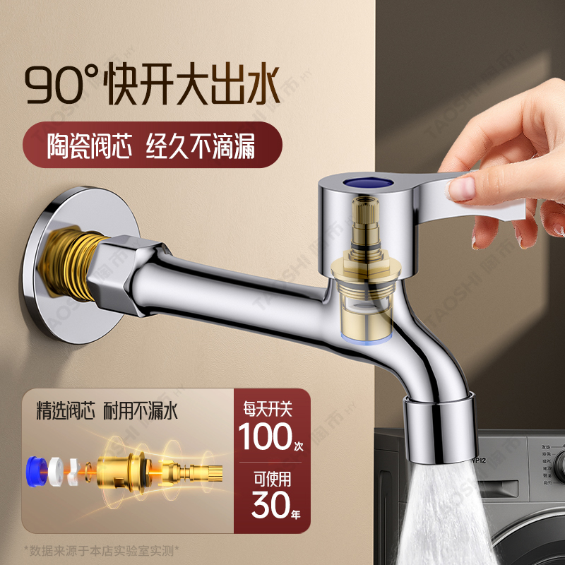 全铜洗衣机加长水龙头4分铜阳台拖把池单冷入墙式家用正品卫生间