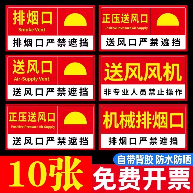 消防排烟口标识牌送风口提示牌贴纸出风口正压送风口机械风机严禁遮挡灭火器消火栓强弱电井标示牌警示牌定制