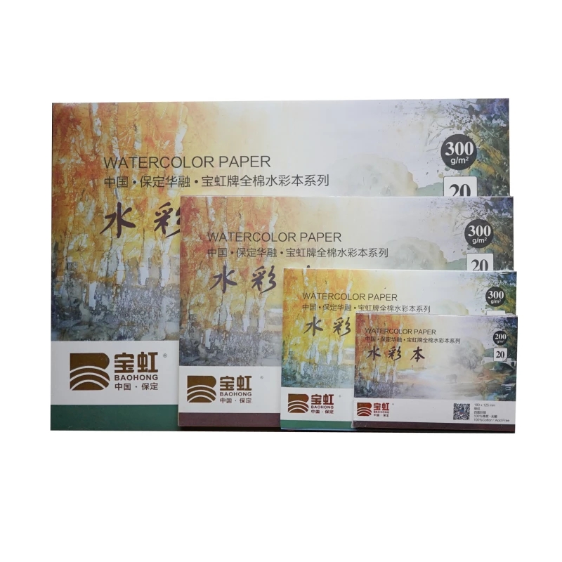 保定宝虹水彩本300g全棉水彩纸细纹中粗纹四面胶封八开水彩纸手绘