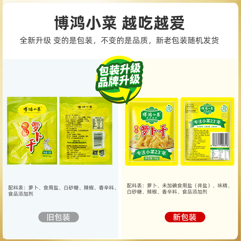 博鸿萧山萝卜干18g小包装即食下饭菜咸菜酱菜开味菜不辣早餐袋装