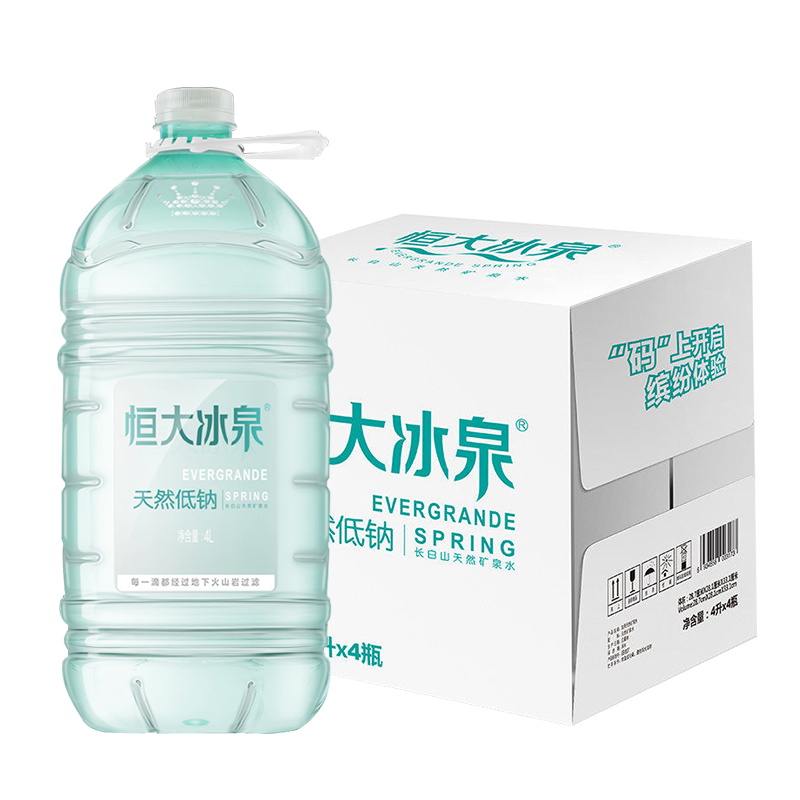 恒大冰泉低钠水4L*4桶整箱包邮长白山天然矿泉水大桶装水饮用水