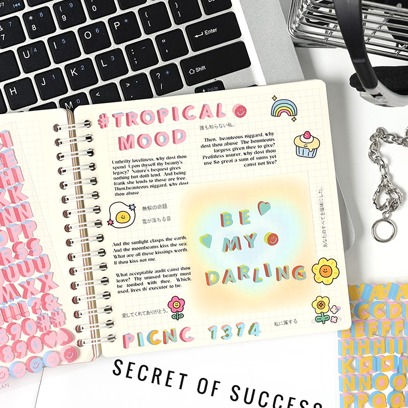 ins立体彩色英文字母数字贴纸手账diy装饰咕卡水杯素材小贴画防水